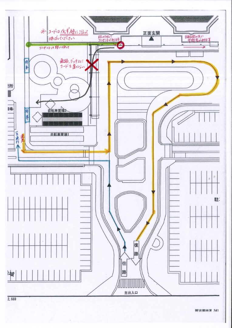 ▶︎守衛室でコードリールを借りることができますが、足りないので30m分は用意してください。